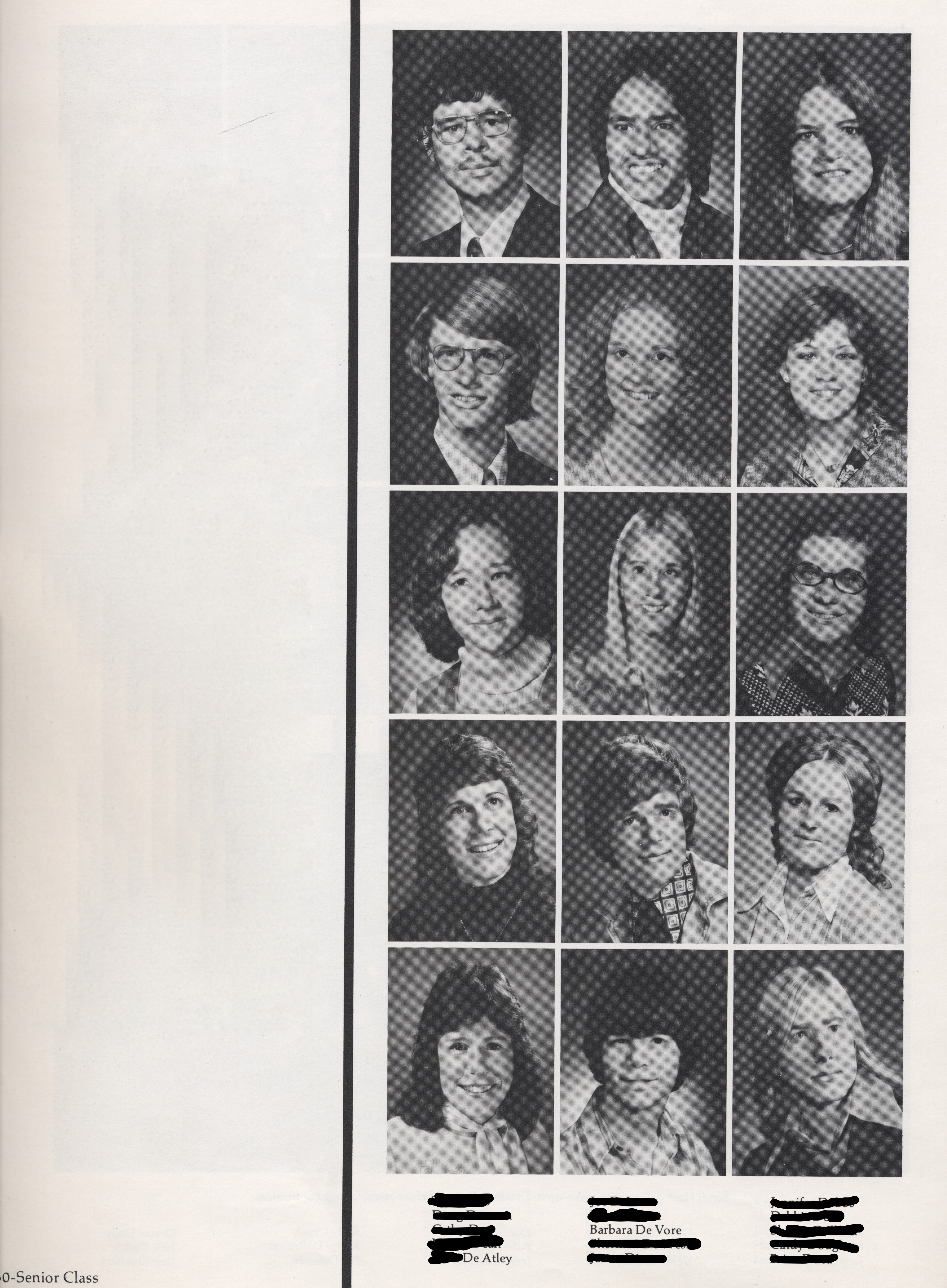 Hmmm, I thought, I went to school with a DeAtley. Which sent me to my high school annual and, sure enough two spots down and one spot over from where my own Senior picture appears is a picture of Roger Patterson’s niece.