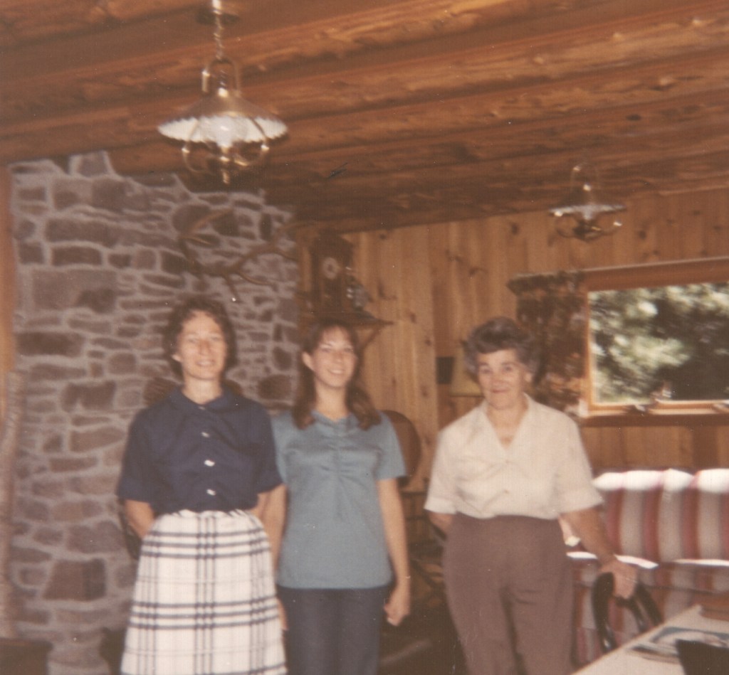 With my mother, sister, and grandmother at the cabin in 1971. You can see the Scrabble board holder behind them.