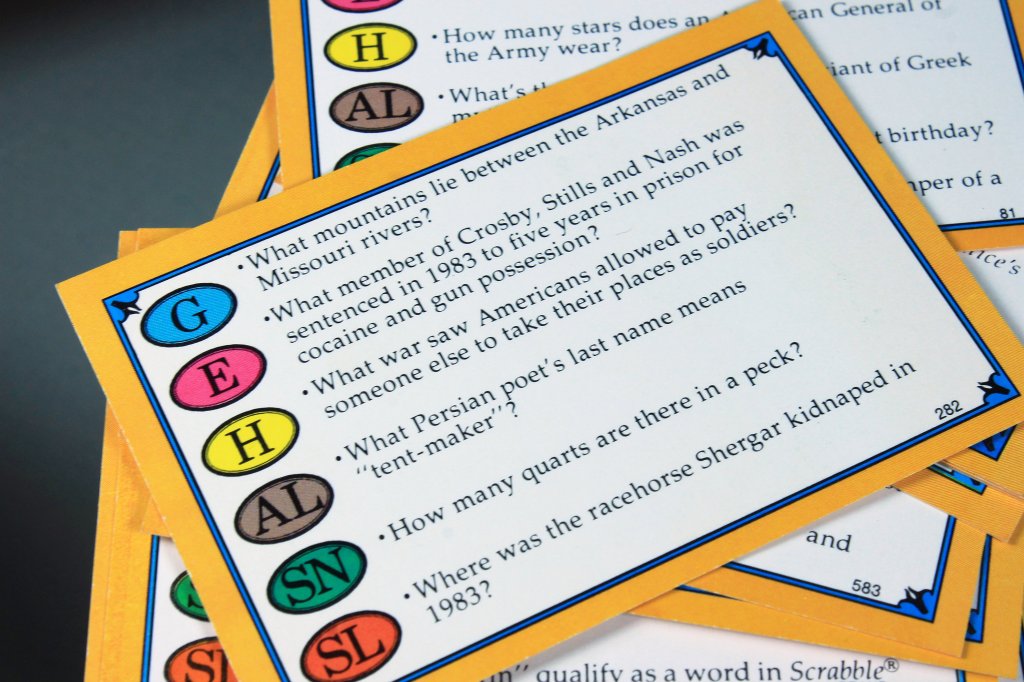 In fact, to this day, we refer to the original Arts and Literature ‘brown’ segment as Obscure Authors. Now, my hubby is a trivia brain so this game was right up his alley. Except for the Obscure Authors category, that is.