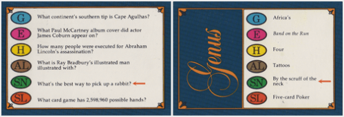 After awhile we became familiar with some of the games less desirable traits. Things like the fact that it could drag on forever and the players would lose interest. Or that there were some topics which were so ridiculous that there was no way any normal person would ever know the answer.