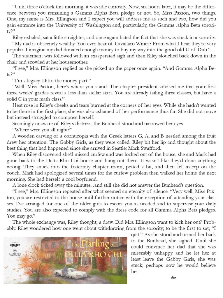 The Darling of Delta Rho Chi Excerpts from the Novel Share this: Click to share on X (Opens in new window) X Click to share on Facebook (Opens in new window) Facebook Like Loading...